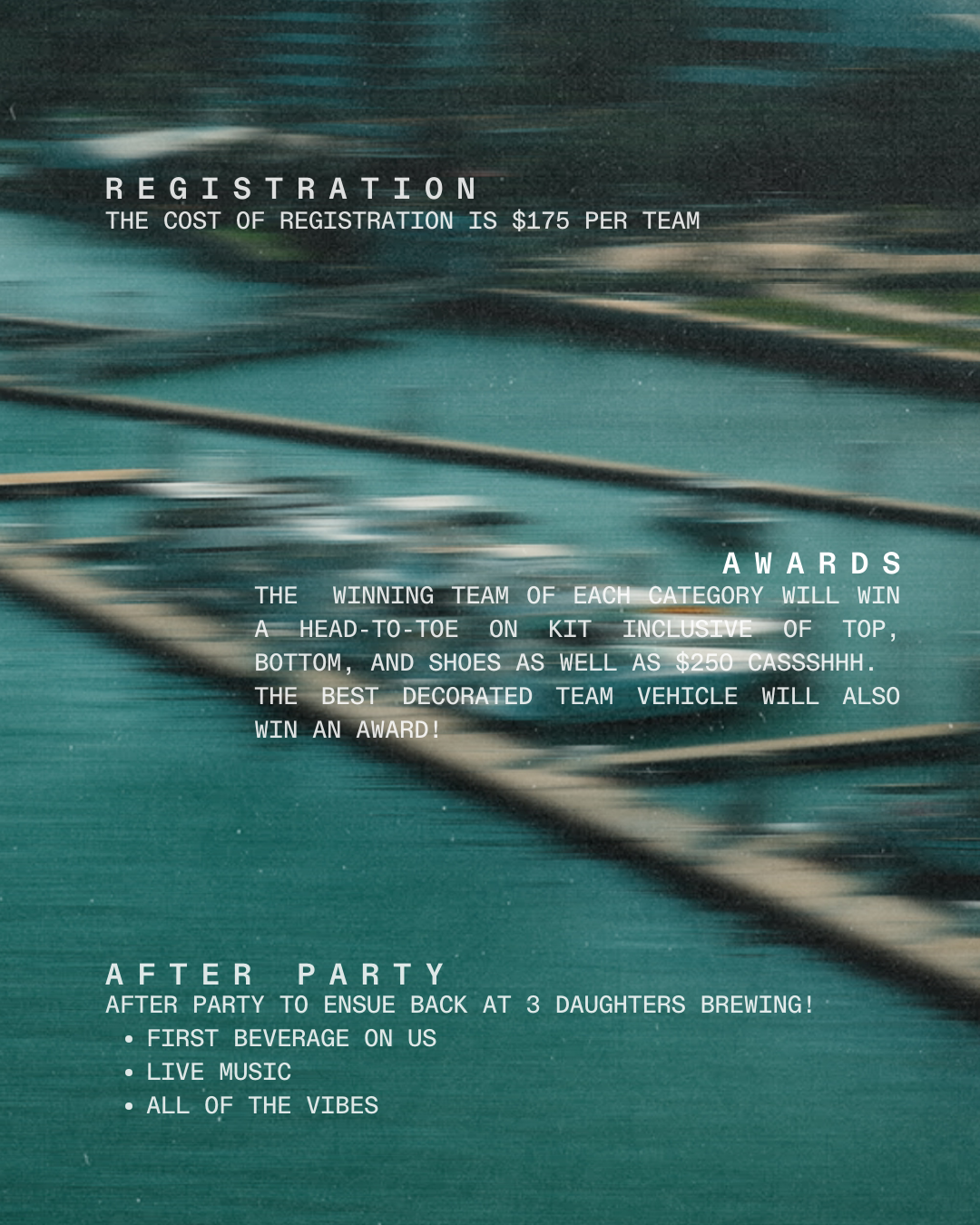 Registration is per team. Have yer team CPTNs register and y'all can figure out the back end. Due to the format of the race, there are no refunds.